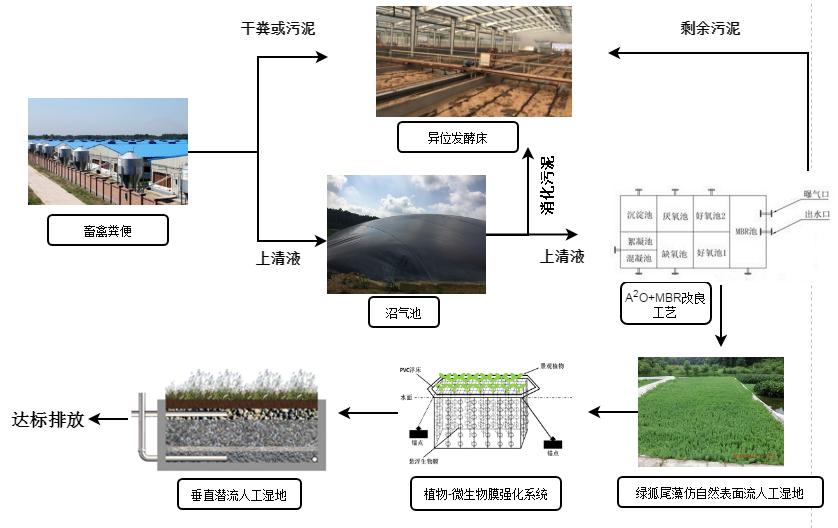 而針對我國規?;B殖場來說,近些年來大多采用固液分離—厭氧發酵—好氧曝氣傳統三段式工業處理模式處理養殖廢水,即理、化并用技術。該處理模式具有占地小、季節適應性強以及可產出部分能源氣體(沼氣)等優點。但同時也存在投入、運行成本高,有機物和氮的去除不徹底,除磷工藝缺乏等缺點。隨著《畜禽養殖業污染物排放標準》(征求意見稿)的逐步落實,現行的畜禽養殖廢水處理工藝大多已無法滿足新標準的排放要求。